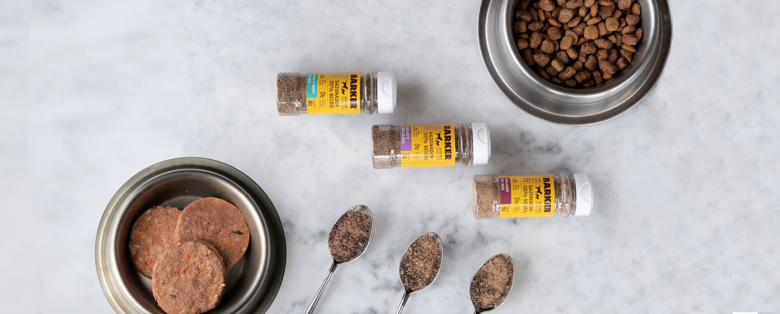 Nuestros Sazonadores 100% Naturales agregan Más Sabor al plato diario de tu mascota y además son un Suplemento Nutricional con Vitaminas, Minerales y Prebióticos que favorecen la Salud Digestiva y el Sistema Inmune.